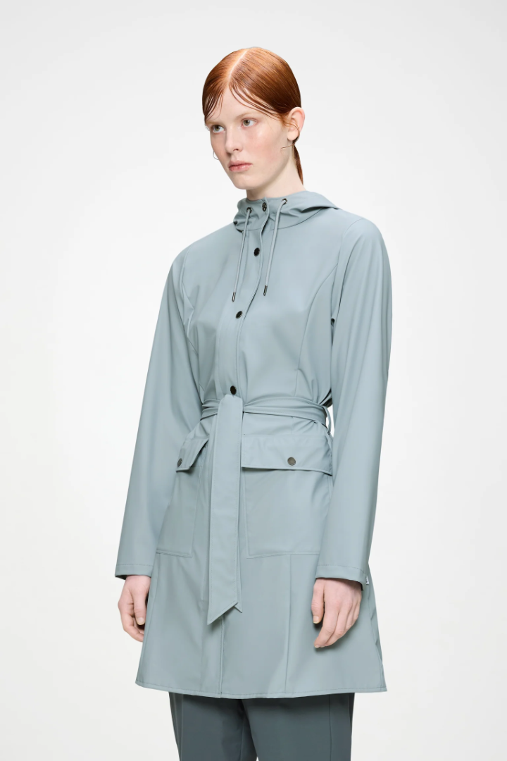 La Curve W Jacket è un impermeabile donna essenziale con silhouette leggermente sagomata che accentua il punto vita. È progettata per bloccare l’acqua, il vento e il freddo.