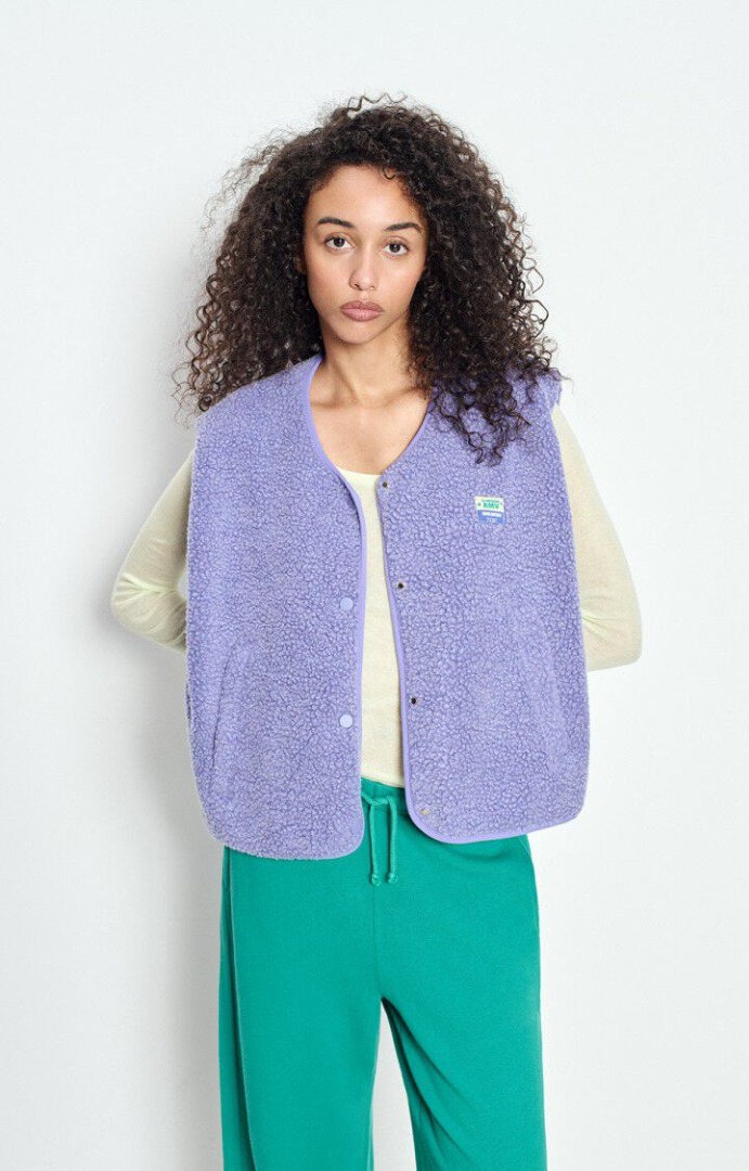 La giacca senza maniche Hoktown da donna è uno dei capi iconici del guardaroba American Vintage. La sua morbida texture effetto shearling, realizzata con materiale riciclato, offre un piacevole calore e un comfort avvolgente per tutti i giorni.