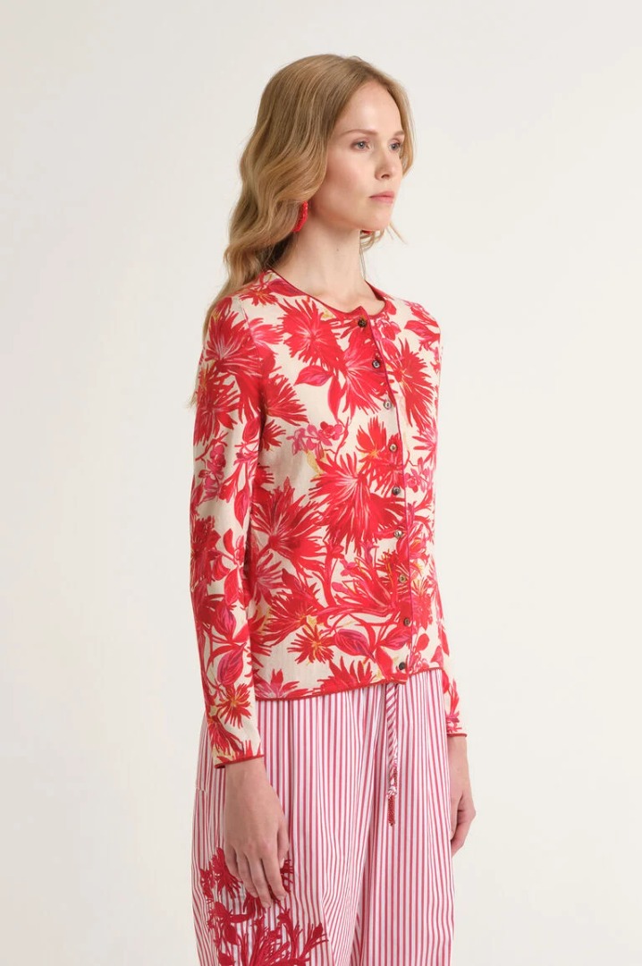 Morbido e luminoso, questo cardigan girocollo in cotone dalla mano soffice è impreziosito da dettagli di lurex che aggiungono una nota brillante. Proposto in diverse stampe di collezione, si abbina facilmente a tutti i capi del guardaroba Malìparmi. Un vero must-have di stagione, versatile e intramontabile.
