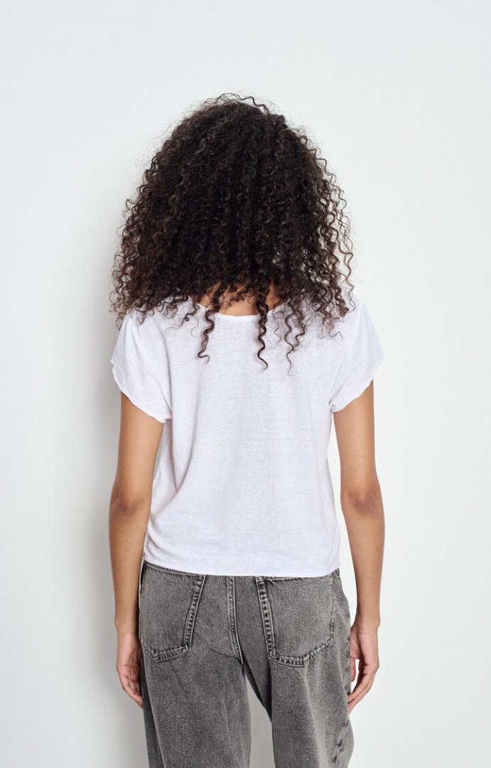 La tshirt a maniche corte Dualy da donna associa lino ed elastan per una sensazione premium e un comfort ottimale. Leggera e fresca, si distingue per la sua texture fiammata essenziale e il suo gioco di trasparenze sottili, che le conferiscono un tocco contemporaneo e femminile.